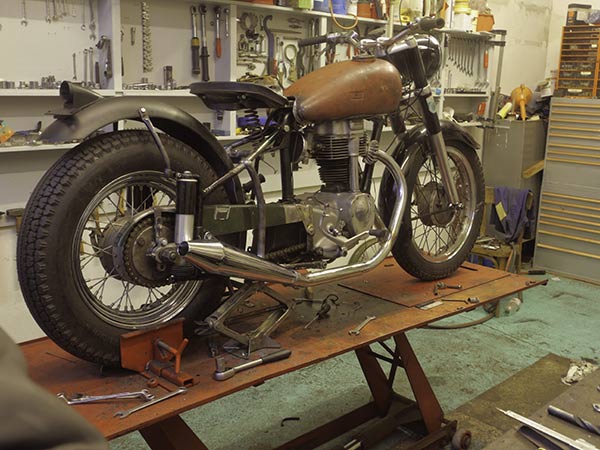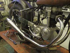 Noch vor Weihnachten wollte ich mir unbedingt den Sound erstmals geben. Der extra angeschaffte Schalldämpfer, der eine leicht verkürzte Version eines Norton Commando-Schalldämpvers war, hatte wie sein Vorbild den sauberen Durchblick, wenn man durch eine der zwei Öffnungen schaut (bloß "an der Seite" war hinter einem gelochten Blech ringsum Glaswolle, wodurch bei niederen Drehzahlen Abgase seitlich verwirbelten und gedämpft wurden). Bei Vollgas geht alles sauber in der Mitte hinten raus!!! Im folgenden Video wird sie nach vielen Jahren Stillstandes erstmals wieder zum Leben erweckt.