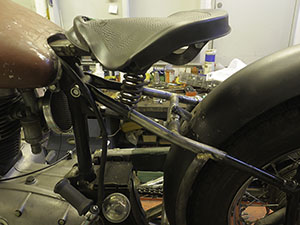 Das war auch schnell eingebaut, aber dann ging es so langsam los. Auch Kettenschutz, Tachowelle, Antriebskette, Elektrik, Kotflügel brauchten die Anpassung an die neuen Rahmen-Gegebenheiten. Auch der verlängerte Rahmen selbst brauchte unsere Aufmerksamkeit. Aus dem "mal-so-nebenbei" Umbau wurde ein Projekt.