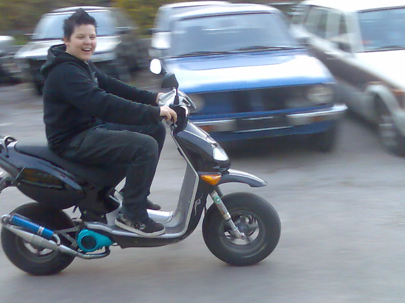 Mein erstes Gefährt: eine Aprilia Rally. Immerhin soweit "aufbereitet", daß das Ding knapp 100 Sachen auf die Strasse brachte (allerdings mit einem Benzinverbrauch von ca 9 Liter/100km).